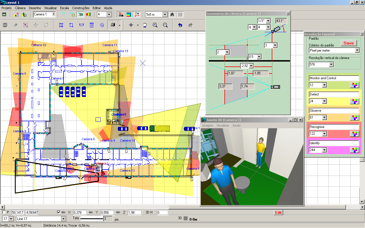 - Obter um desenho contendo projeções horizontais de layout do site com as imagens da câmera, vista calculada áreas, e grade de coordenadas a ser usado como base para o projeto;