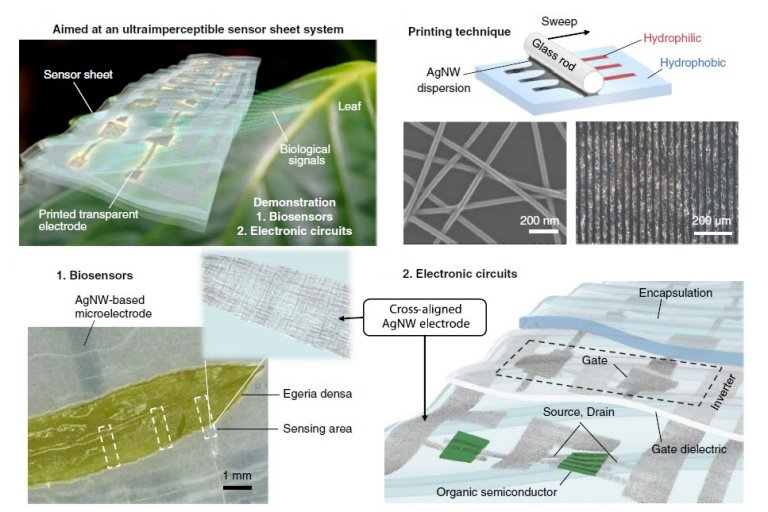Como prova de conceito de funcionalidade, eles usaram suas matrizes de nanofios para detectar sinais eletrofisiológicos da planta elódea (Egeria densa), nativa do Brasil e muito usada em aquários. Os sensores transparentes aderiram às folhas da planta sem causar danos, permitindo obter dados durante longos períodos de tempo, demonstrando a robustez da plataforma.