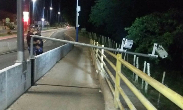 De acordo com populares, que testemunharam o vandalismo, três homens em uma caminhonete Hilux Cinza pararam o veículo ao lado do poste que dá sustentação ao equipamento e o forçaram até que o mesmo caísse, o que se supõe é que os mesmos também tenham agido do mesmo modo na ponte Nova.