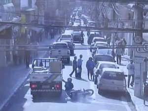 As lentes da câmeras também flagram acidentes. Um casal de idosos, por exemplo, atravessa a rua. O caminhão freia, mas a moto vem no embalo. Para não acertar o casal, o motociclista tenta desviar e cai. Em outra situação, as imagens mostram um carro que faz uma conversão errada e atinge o motociclista.