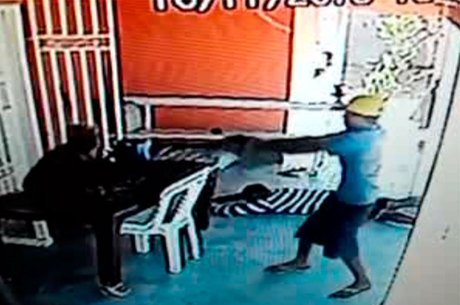 O atirador, que usa um boné amarelo, rende uma pessoa que estava na sede da fazenda e aponta uma arma para João Evangelista da Cruz, conhecido como “Gaguinho”, que estava sentado em um banco. O criminoso efetua vários disparos contra a vítima, que tenta se proteger. O idoso ainda procura abrigo atrás de uma mesa, mas o criminoso continua atirando.