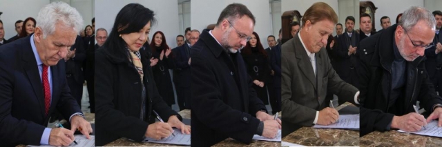 O Presidente do Tribunal de Justiça do Paraná (TJ-PR), Desembargador Renato Braga Bettega, e a 2ª Vice-Presidente do TJ-PR, Desembargadora Lidia Maejima, receberam nesta terça-feira (18/7) parceiros, imprensa e convidados para assinatura de um convênio que permite a utilização da biometria nos estádios e em grandes eventos no Estado.
