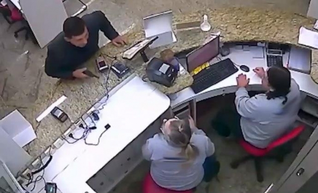 Imagens mostram os assaltantes apontando armas e recolhendo os aparelhos