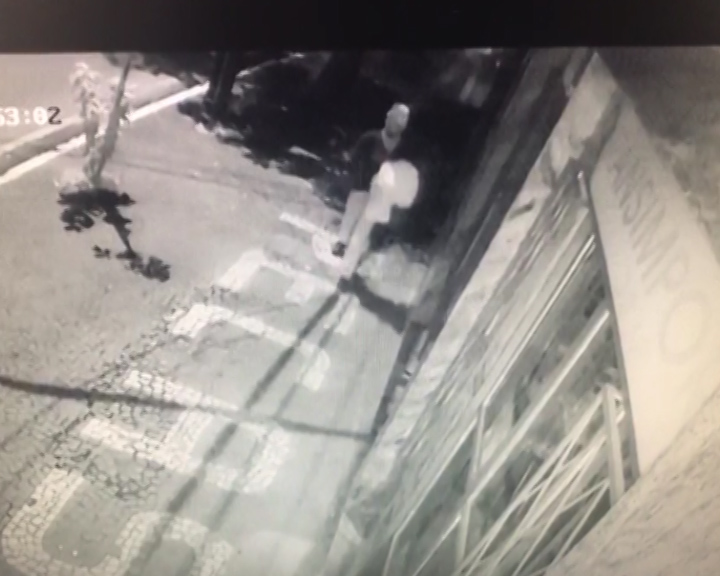 Nas imagens é possível ver os dois homens transitando pela calçada.