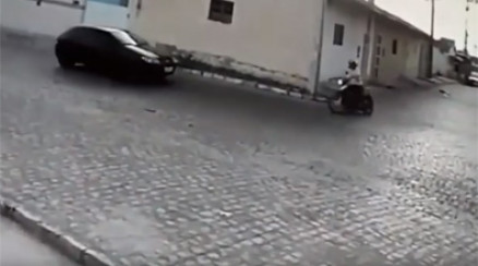 Câmera de monitoramento flagra colisão entre carro e moto em Pernambuco