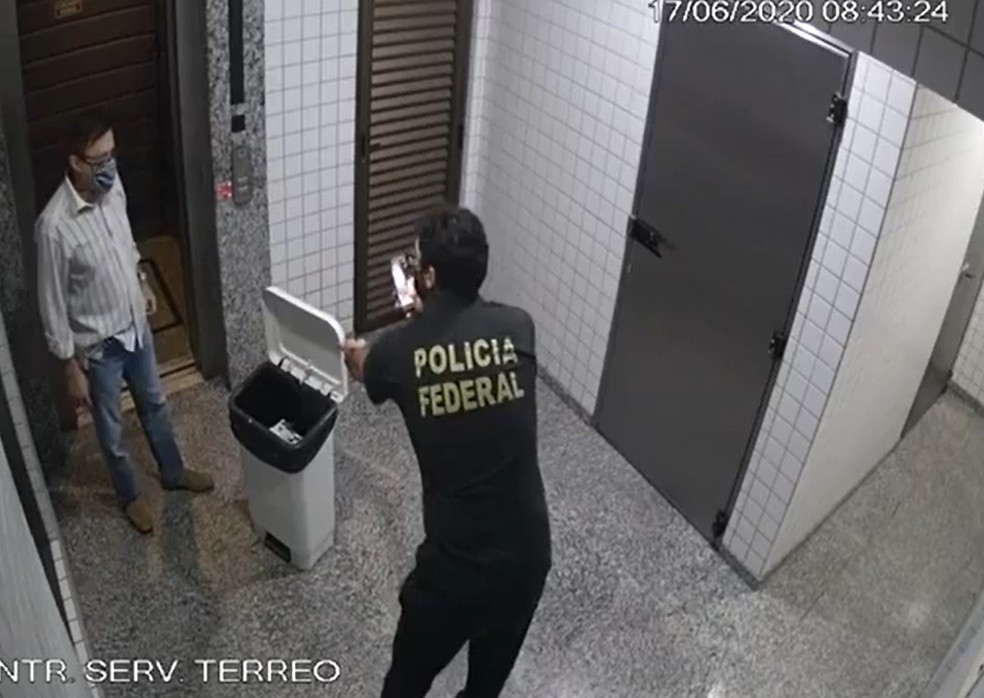 As imagens mostram o conselheiro saindo do escritório dele enquanto os policiais estavam no local.