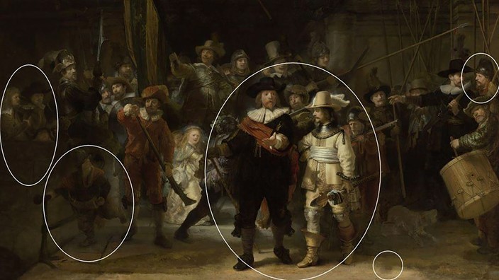 A obra de arte já atraiu milhões de visitantes ao Rijksmuseum, na capital holandesa, mas o que poucos sabem é que o quadro é incompleto. Adquirido pela prefeitura de Amsterdã, em 1715, a pintura não cabia entre as duas portas do prédio, e a solução encontrada para o problema foi simples: cortar a pintura.