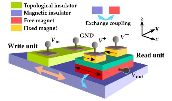 Com isso, Shaloo Rakheja e colegas da Universidade de Nova York, nos EUA, criaram sua vTOPSS (chave de spin topológica controlada eletricamente), que requer apenas campos elétricos (tensões), e não correntes, para chavear entre dois estados lógicos, reduzindo largamente a energia consumida e o calor dissipado