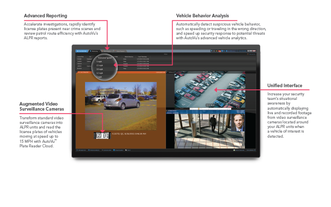 O AutoVu™, sistema de reconhecimento automático de placas de veículos (ALPR), automatiza a leitura e identificação das placas. Assim, ele facilita a localização dos veículos de interesse e a fiscalização de restrições ao estacionamento por órgãos de manutenção da ordem pública, organizações municipais e empresas.