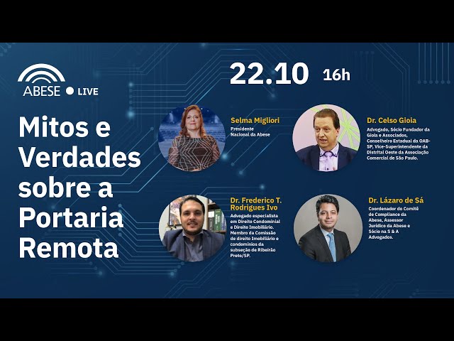 É neste contexto que na LIVE “MITOS E VERDADES SOBRE A PORTARIA REMOTA” a ABESE esclarece importantes conceitos sobre este importante mercado para orientar especialmente síndicos, administradoras de condomínios e condôminos sobre a realidade dos serviços de Portaria Remota.