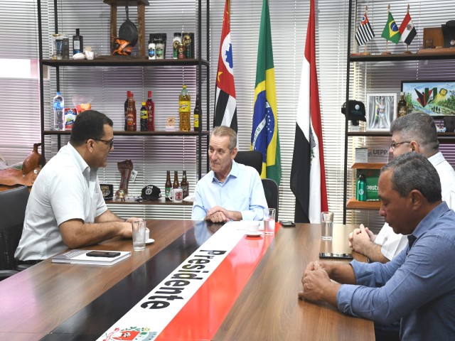 O prefeito Ed Thomas recebeu na manhã desta segunda-feira (18/07), no gabinete da Prefeitura de Prudente, o coronel da reserva Silvio César Saraiva, que é consultor em Segurança Pública e Privada da Militium, e representante do vereador Thiago Oliveira. A reunião foi acompanhada pelo secretário de Comunicação, Geraldo Gomes.