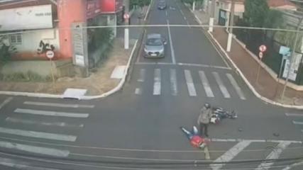 A prefeitura de Ourinhos (SP) divulgou nesta terça-feira (21) um flagrante de um acidente com um motociclista registrado pela central de monitoramento da cidade.