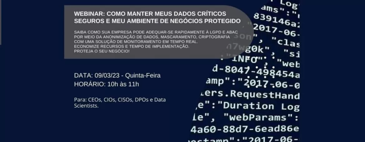 Direcionado para CEO, CFO, gestores e consultorias de TI, o webinar executivo acontece no dia 09 de março e mostra como a anonimização de dados deve ser implementada nas empresas